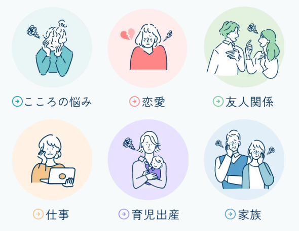 仕事・恋愛・家族・育児・友人関係・こころの悩みなど、カテゴリで分けられています。